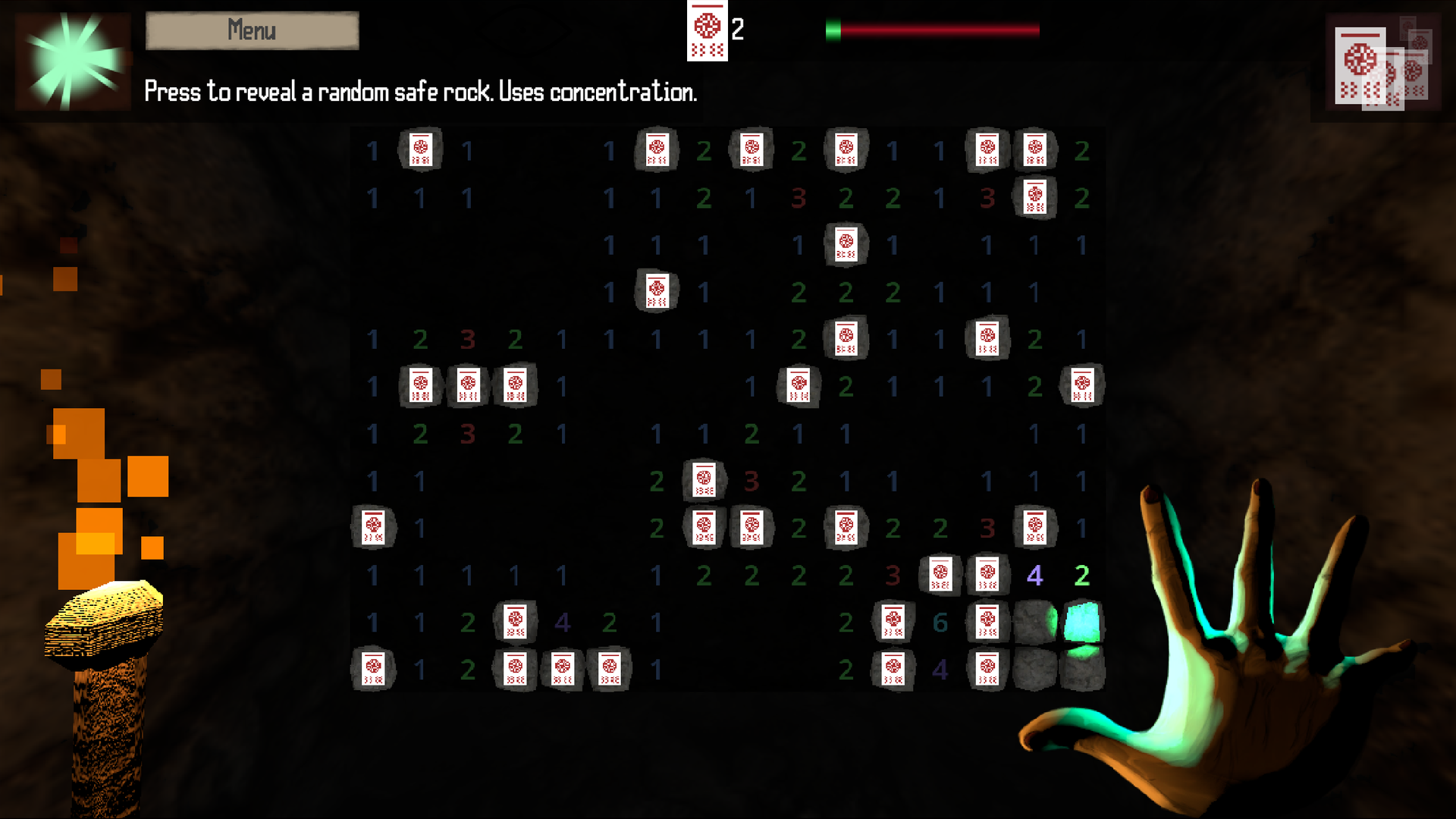 A minesweeper game where you can use your magical abilities to deal with pesky odds. Save your concentration resource to speed up the process or get rid of tiebreakers. Mine your way through without disturbing the spirits.