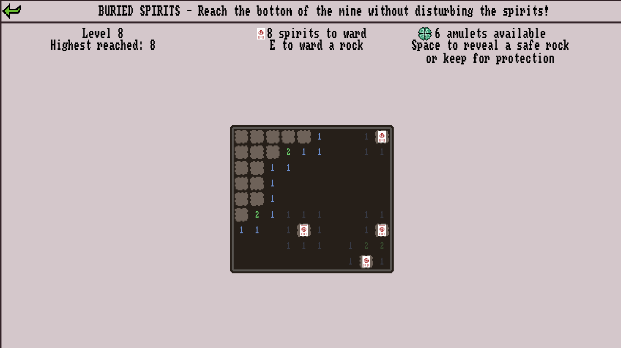 Second, is that I just could not stop playing my Buried Spirits minigame when I was testing it. So I went and made it into a full game instead! Thus, came to be the Buried Spirits Minesweeper game :)
