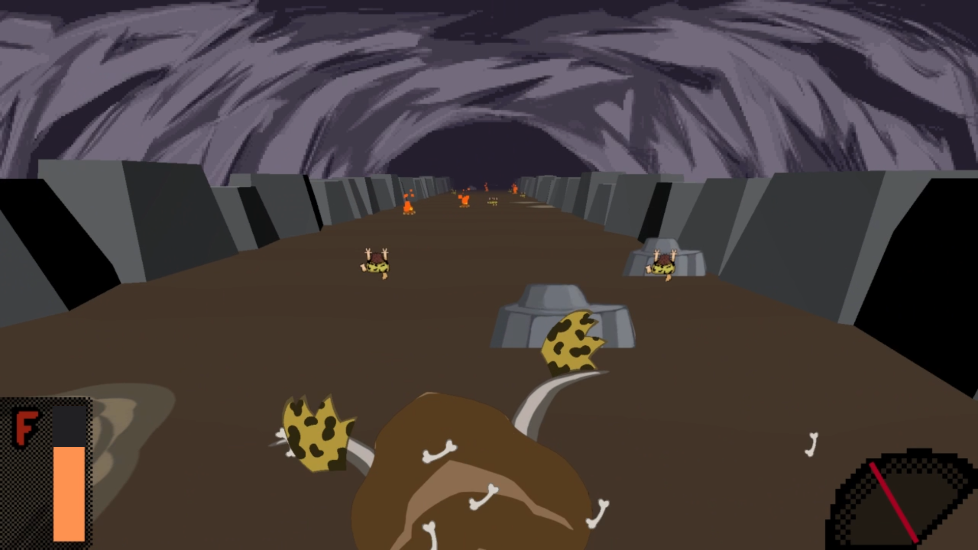 It initially was supposed to be about being the caveman and having to dodge mammoths, but I figured it would be much more fun the other way around :D